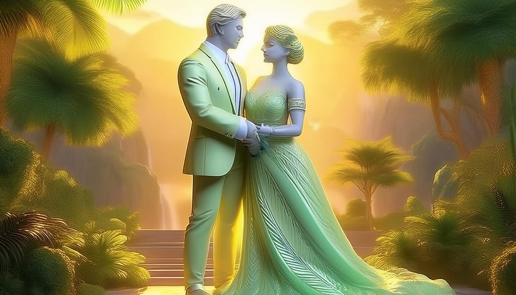 Marriage, in all its forms, is the ultimate expression of love. It is a solemn promise between two individuals to stand by each other, no matter the challenges that life may present. The statue of the newlyweds captures this moment of commitment, freezing in time the instant when two hearts become one. Their hands clasped together, their faces filled with happiness and determination, this representation of love reminds us that marriage is more than just a celebration; it is a covenant of the heart and soul.