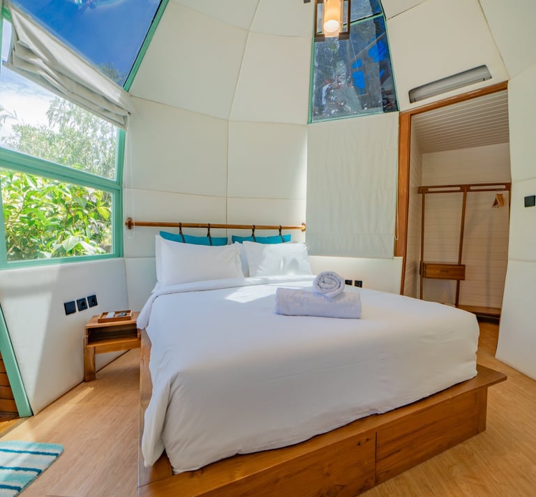 Our eco lodges bring the outdoors inside — blending comfort, calm, and connection. Wake up to birdsong, walk barefoot through the garden, and let the serenity of Kenderan Village guide your day.